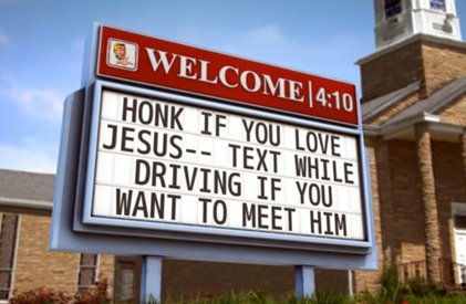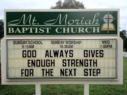 Church signs. We see them on churches on the sides of streets and roads everywhere I travel. I remember when Tony Greene would travel, he would see one that would catch his eye and he would write it down in a book and save it. Later, he would read some of the funniest ones out on stage. Some were so funny that when he saw them while driving, he would have to pull over off the road from laughing so hard.