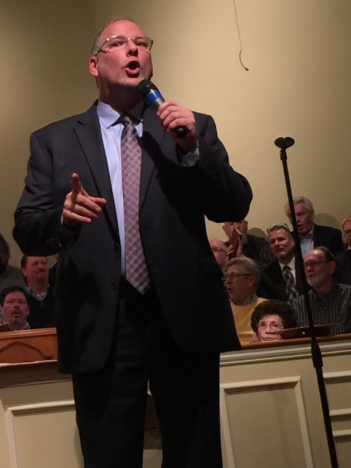 special music from different individuals and groups. There were around 30 songs sung by the entire choir and congregation, with Lamar leading the congregation and Jeff calling out the page numbers and directing the choir. There were numerous well known singers from the area in the choir and one special was Sandy Payton (Sandy is the mother-in-law of Jason Waldroup who sang for years with Greater Vision). Sandy can rock the organ and beat the socks off a piano, and has a beautiful voice. She sang a song with a choral group that she had written and arranged, “Heaven Is Waiting.â€