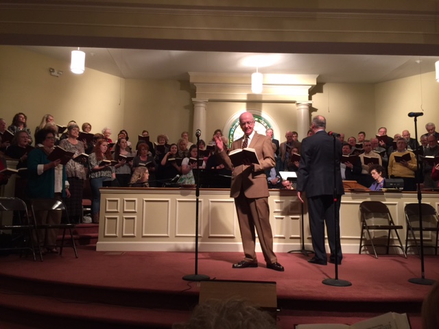 With a choir of over a hundred people, the Red Back Church Hymnal Singing returned to the Church for the sixth year. The audience was streaming in to find seats, even standing along the walls and in the welcoming area of the Coal Mountain Baptist Church in Cumming, GA.