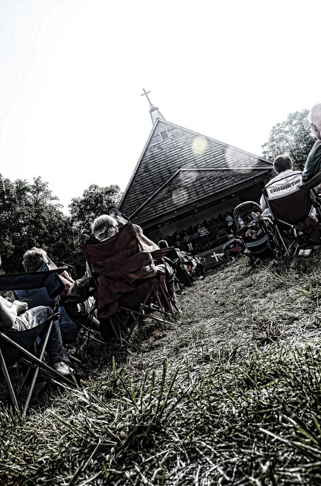 As the sun began to set the first evening sending pink streaks across the sky, Karen, Susan and Jeff walked on stage to welcome everyone to their Homecoming. When Karen finished telling about the Methodist Campmeeting’s aged benches, Susan stepped up to share about one of the blessings they received while preparing for the weekend. She explained how everyone gathered in front of the stage in a circle to pray the previous night for the weekend festivities. Excitedly she told us, “Everybody had left and I was the only one down here and it was like something said, ‘Look over,’ and when I looked over a double rainbow was right there in the sky. I have never seen the end of a rainbow before, but the end of that rainbow was sitting down right over there at the end of that tent. I said, ‘Lord, thank you. Thank you for Your blessings.’ Cause’ you know what? Maybe you’ve come with a heavy heart and you feel like there’s no hope – there is hope in Jesus Christ and He has already given us all the blessings we will ever need but there are so many more out there that He wants to give us. So be encouraged and let this weekend be one of rest, restoration and knowing that God’s promises are good and that He has given you a double rainbow!†That promise in the sky shined all through the weekend.