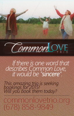 CLT: If there is one word that describes Common Love Trio, it would be†sincereâ€. Each member of this Southern Gospel singing group is sincere in their love for the Lord, sincere in their love for the music they sing, and sincere in their need to spread the word to others through their music.